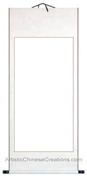 Premium quality blank Chinese wall scroll - this blank Chinese wall scroll is made of white silk brocade material and is created following the traditional Chinese mounting process. This blank scroll may be used for Chinese painting, or Chinese calligraphy.