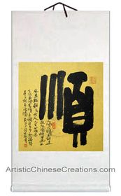 The Chinese character shown on this calligraphy wall scroll means "Successfully / Smoothly".