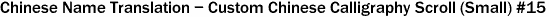 Your name will be translated into Chinese characters. It will be professionally hand painted on rice paper and mounted on traditional Chinese scroll.