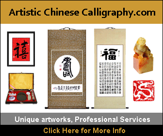 Artistic Chinese Calligraphy.com offers unique Chinese calligraphy artworks, wall scrolls, traditional paintings, seal carving and custom calligraphy services.